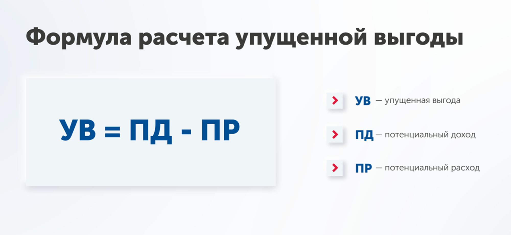 Упущенная выгода — это юридический и экономический термин, обозначающий доходы или иные блага, которые лицо (компания или индивидуальный предприниматель) могло бы реально получить при обычных условиях гражданского оборота, если бы его право не было нарушено действиями (или бездействием) другой стороны.